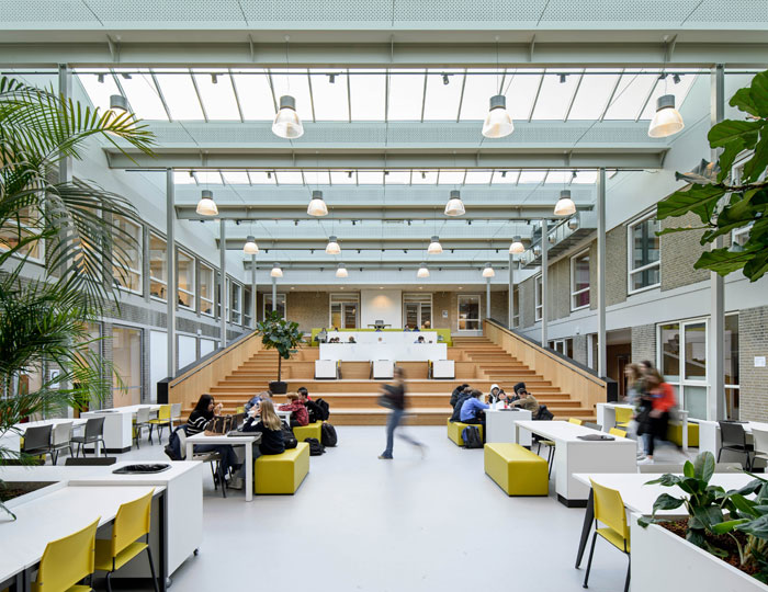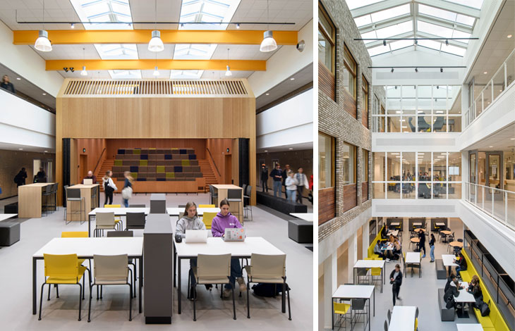Studieruimte Karel Keizer college met veel daglicht door modulaire lichtstraten