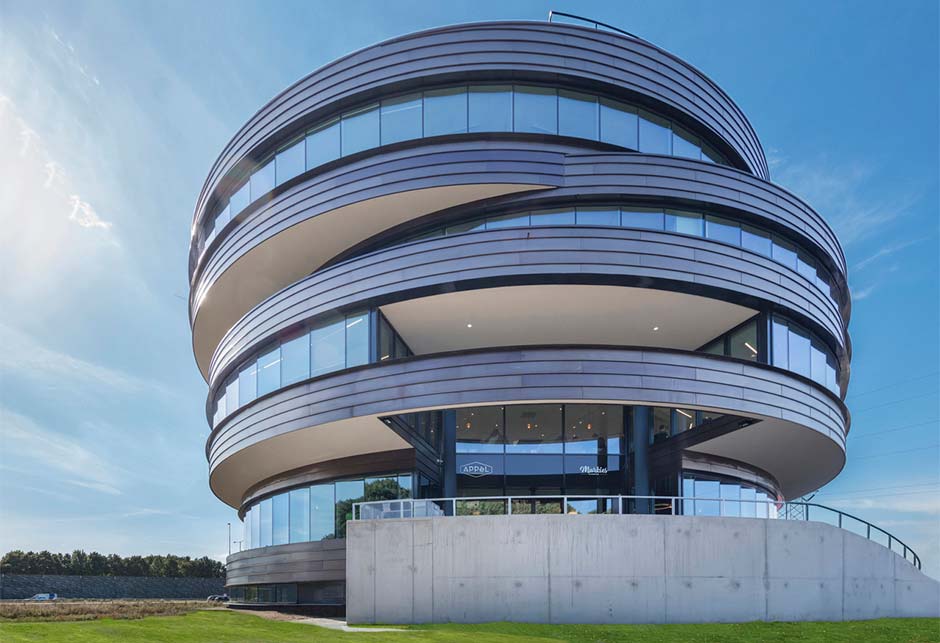 Het opmerkelijke, spiraalvormige kantoorgebouw Appèl is een belevingscentrum met een trendy uitstraling. Het open en ruimtelijke karakter van de vide geeft de gebruikers een open beleving door het gehele gebouw welke extra versterkt door het toepassen van een grote ronde glaskap in de centrale as.