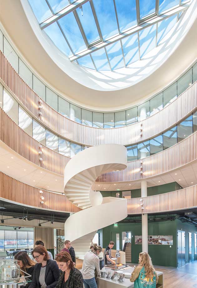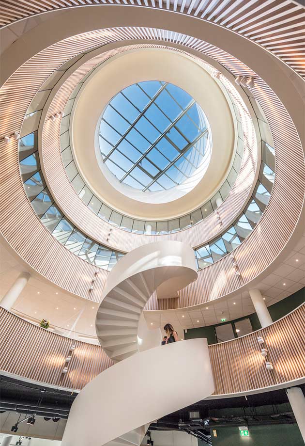 - De vide vormt het centrale hart van het gebouw.