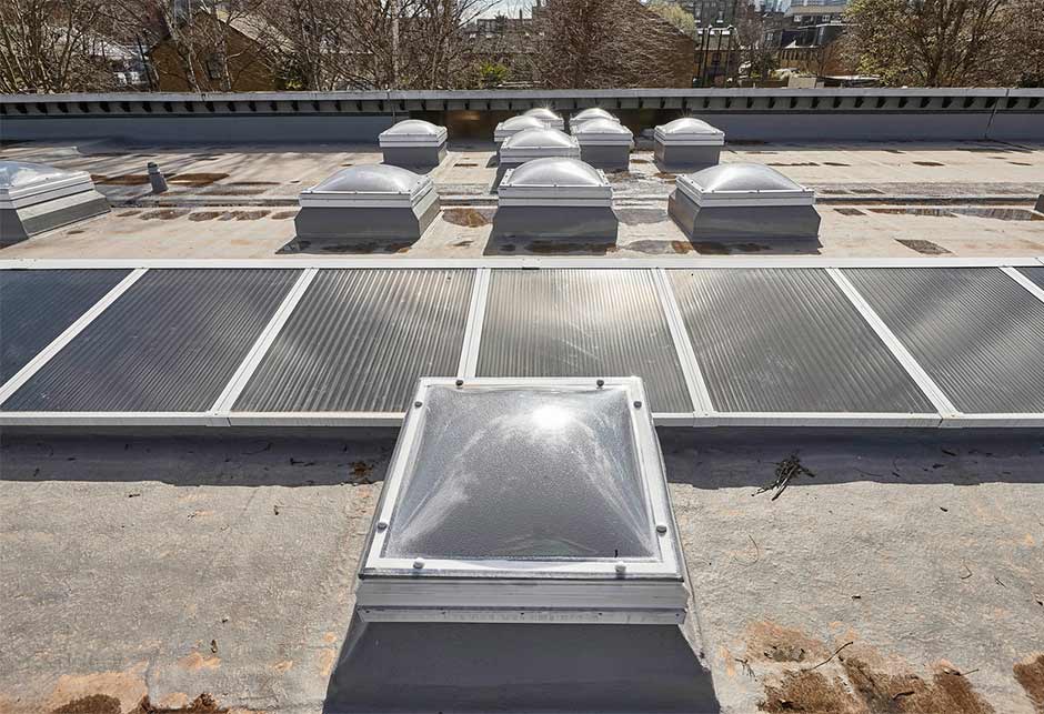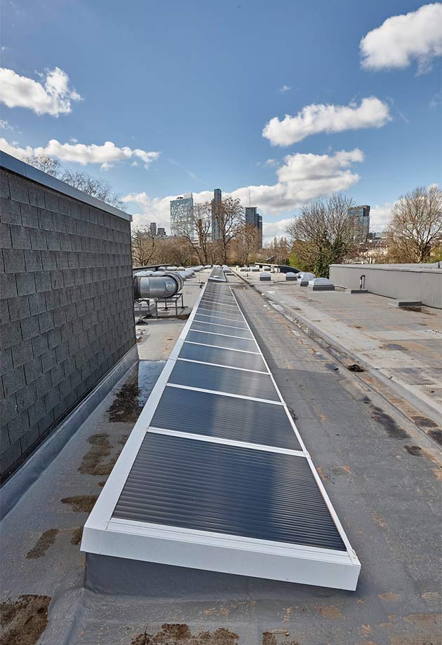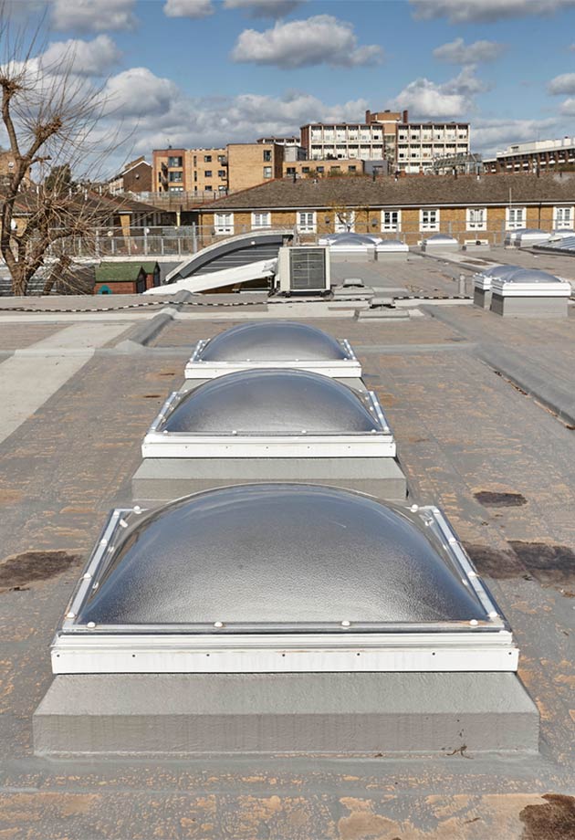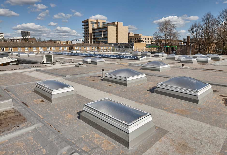 De verouderde lichtstraten op het dak van de Thomas Buxton School in Whitechapel, Oost-Londen, zorgden voor lekkages, die het leerproces verstoorden. De school voldeed ook niet meer aan de veiligheidsnormen en de oude lichtstraten waren niet bestand tegen schittering en warmteregulering.